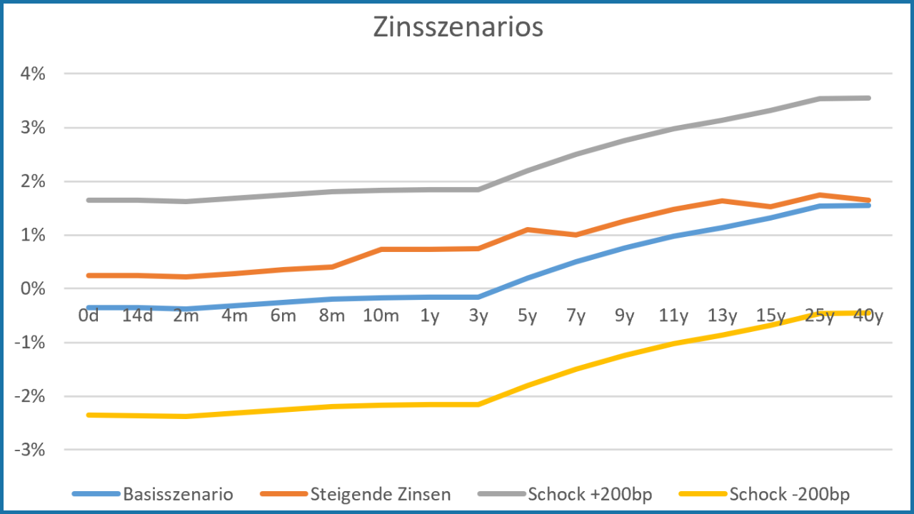 - Simulation von Standard-Zinsschocks und individuellen Marktszenarien