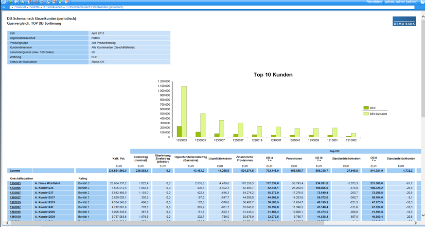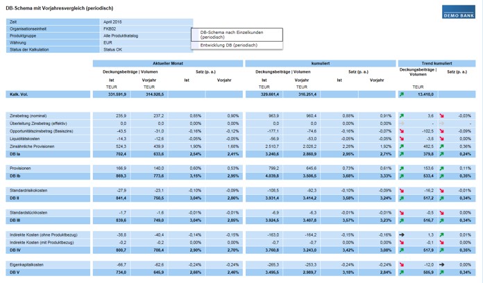 • Maximale Drill-down-Möglichkeiten in unterschiedliche Institutsdimensionen wie Organisationseinheiten, Kundenmerkmale und/oder Produkte, bei Bedarf transparent bis auf Einzelkunden-/-kontenebene zur gezielten Ursachenanalyse