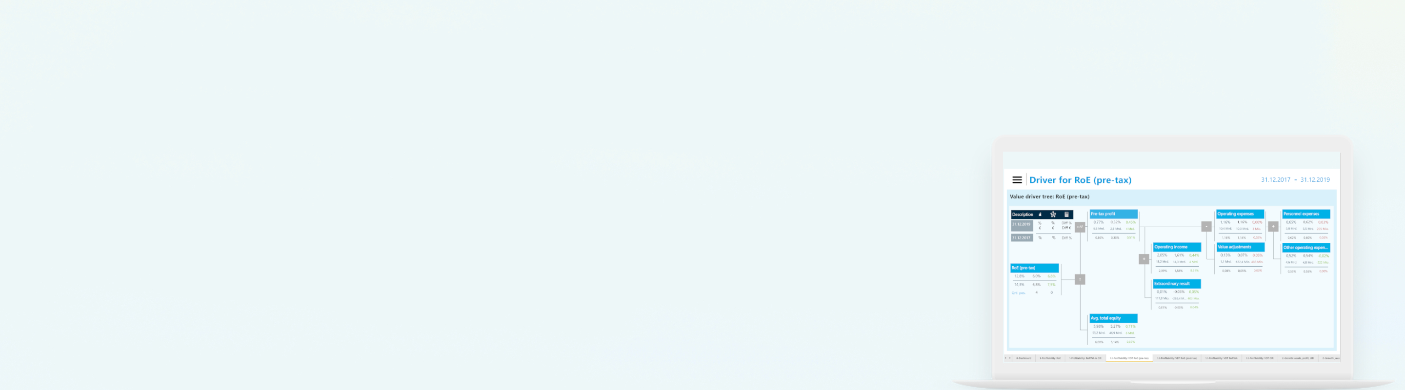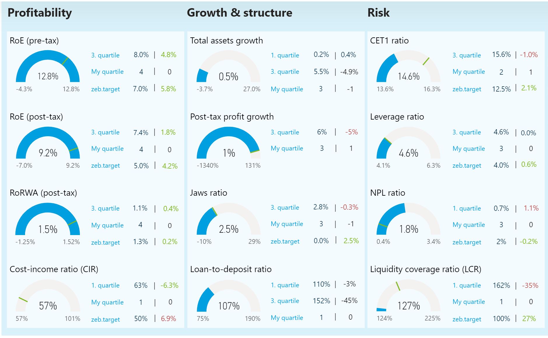 zeb’s benchmarking solution enables you to achieve transparency about your institution’s financial position in the competitive environment. Analyzing your profitability, structural and risk indicators enables you to identify your strengths and weaknesses among your individual peer group Our value driver analyses provide a detailed cause-and-effect analysis which supports you in deriving optimization potentials to strengthen your financial competitive position.