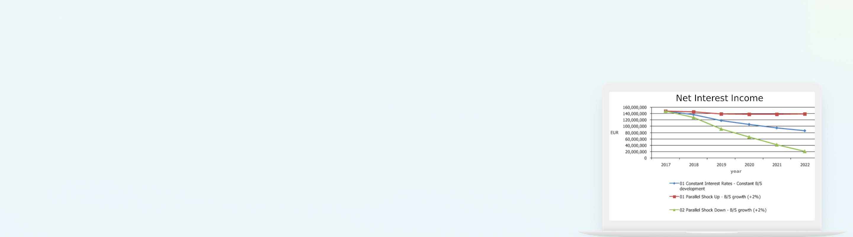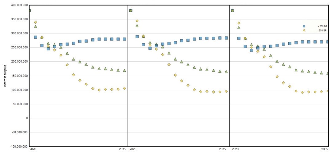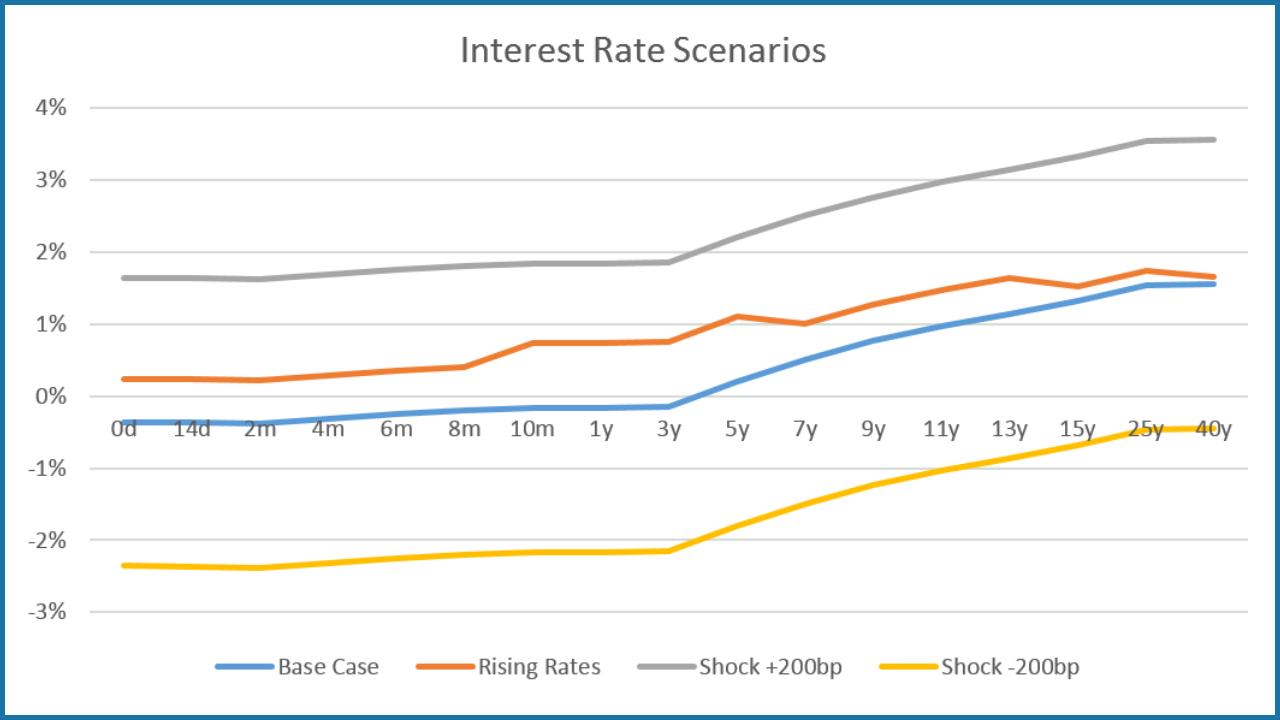 - Simulation of standard interest rate shocks and individual market scenarios